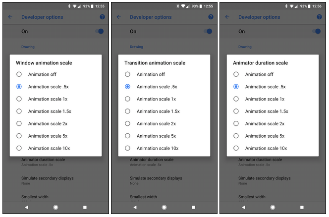 Naši pametni telefoni nikoli ničesar ne odpirajo, zapirajo ali premikajo brez animacij. Animacije so tranzicije, ko vaš telefon menja poglede na zaslonu. Te izgledajo zanimivo, saj popestrijo vašo izkušnjo med uporabo telefona, a porabijo nekaj malega časa pa tudi sistemskih virov.