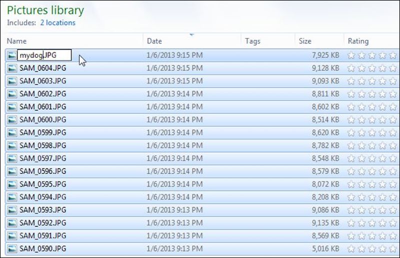 Najhitreje bomo spremenili ime datoteke s pritiskom na tipko F2. Kar je najboljše, je, da deluje tudi za več datotek hkrati. Preprosto izberemo vse datoteke, katerim želimo spremeniti ime, in pritisnemo F2, nato spremenimo ime prvi in s pritiskom na Enter gremo na drugo.